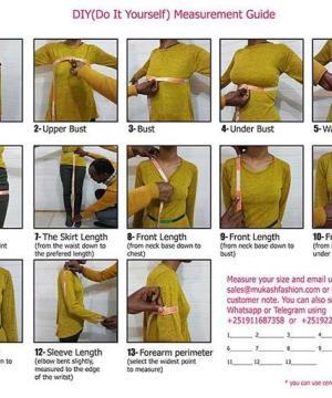 - To get an accurate body measurement, always keep the measuring tape parallel to the floor. Wear undergarments only; do not measure over the clothing.